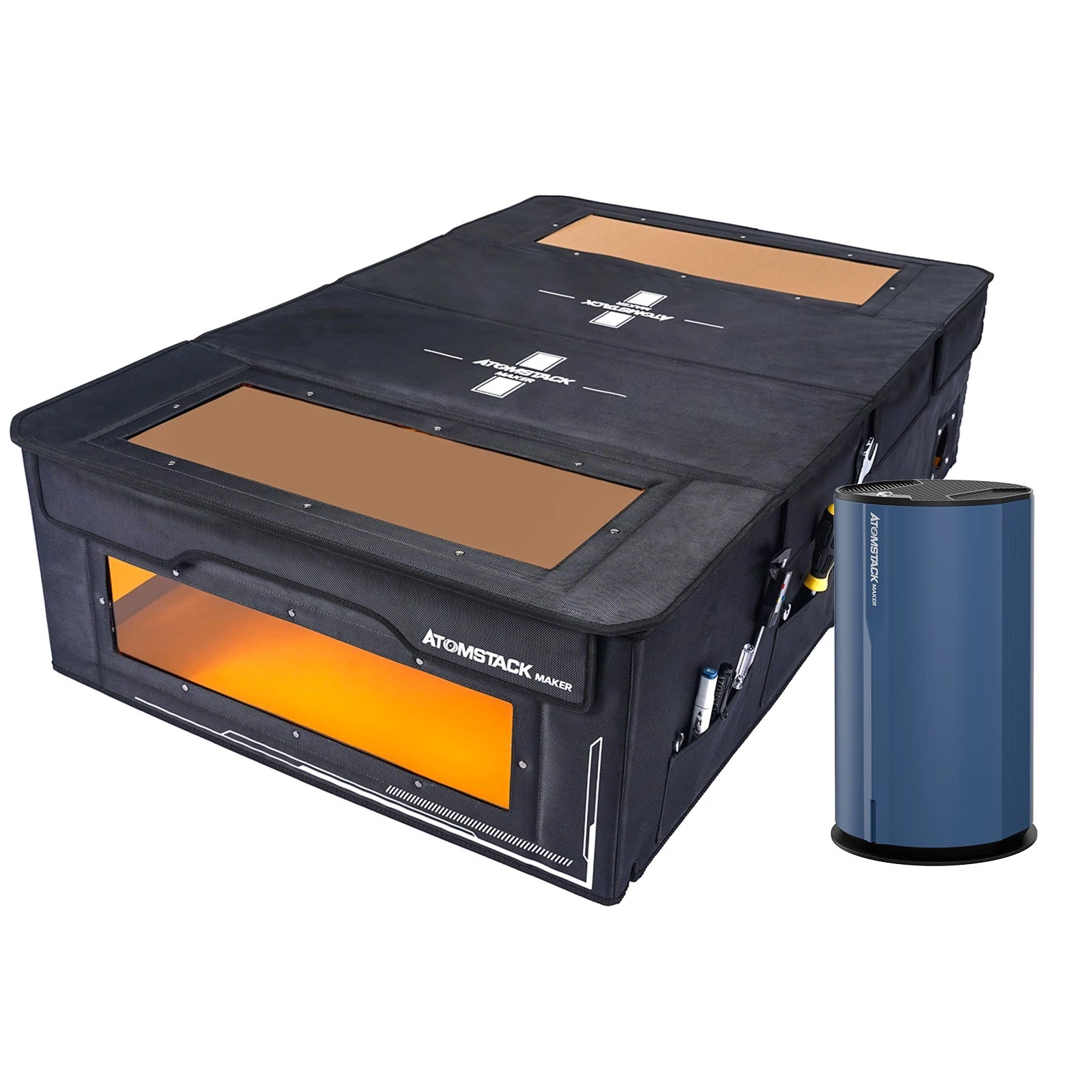 - Lézervágásra tervezve: Atomstack Maker D2 légtisztító, kifejezetten lézervágáshoz kifejlesztett 8 rétegű szűrőelem, hatékonyan képes kiszűrni a lézervágás során keletkező szagokat és káros anyagokat, 99,97%-os szűréssel (atomstack laboratóriumi vizsgálati adatok). ).