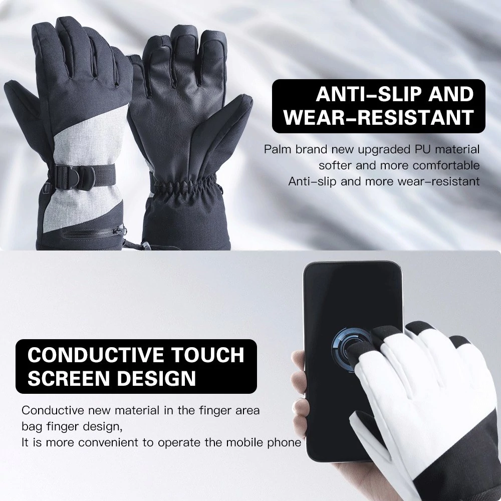 Férfi-női vízálló és szélálló érintőképernyős sí-/hókesztyű kerékpározáshoz, snowboardozáshoz, vezetéshez, szabadtéri munkához - Fekete, M méret