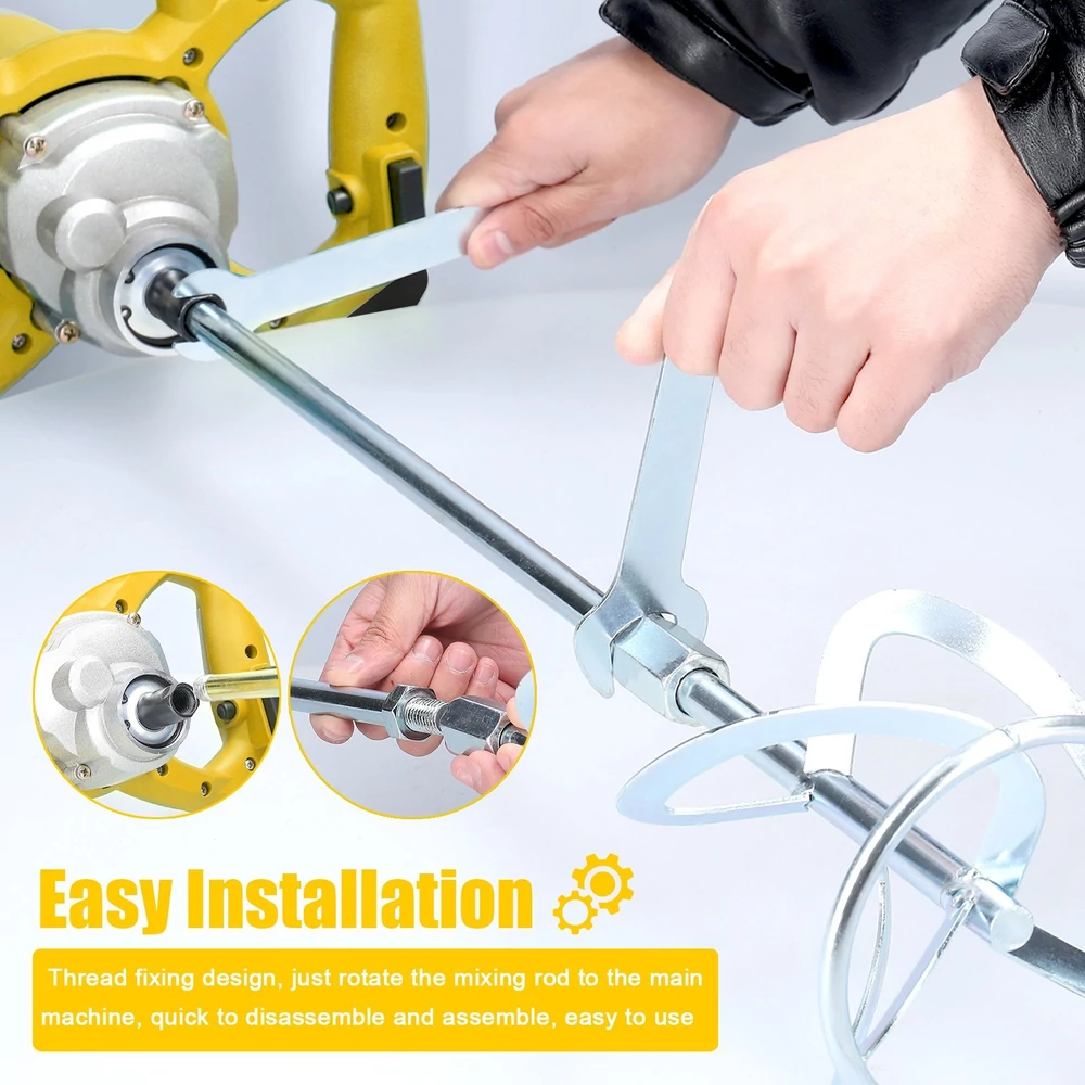 【Sűrűsített keverőrúd】:Megvastagított acél keverőrúddal szerelve, csavaros dupla lapátos kivitelben, hatékonyan, egyenletesen és alaposan keverve, ami nagymértékben megtakarítja az Ön időt és megakadályozza, hogy a habarcs mindenhová kifröccsenjen.