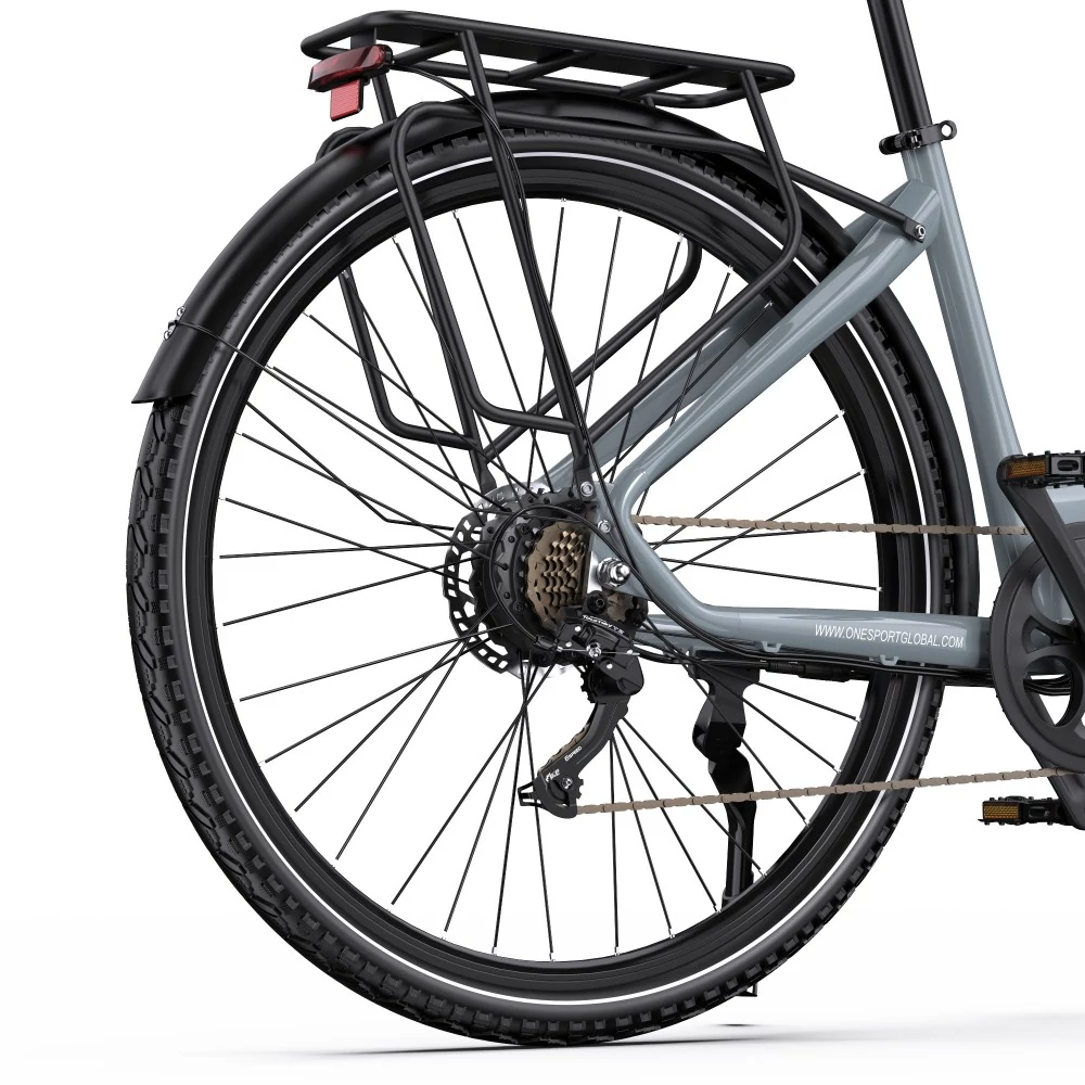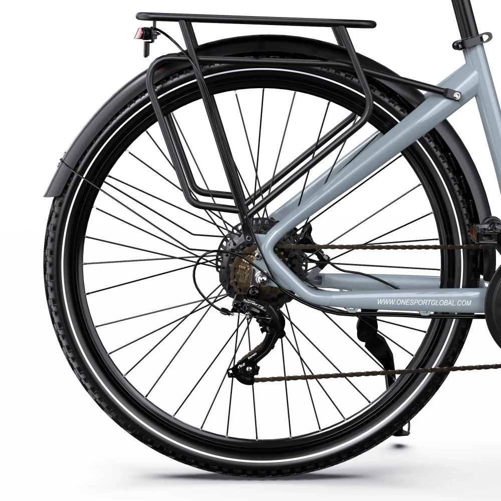 | Specifikáció | Váz: Alumínium Motor: 250W Akkumulátor: 36V 22.5Ah Max. sebesség: 25km/h Hatótávolság: 70-80km (tisztán elektromos üzemmódban), 130-140km (PAS üzemmódban) Szenzor: Nyomatékérzékelő Nyomaték: 40NM Gumiabroncs: 700C*50C Fék: Hidraulikus tárcsafékek Mászási szög: 30° Váltó: Shimano 7 sebességes Teherbírás: 100kg Kerékpáros magassága: 160-200cm Vízállóság: IPX4 Akkutöltő: 42V 3A Töltési idő: 6-8 óra Smart Connect: Bluetooth-kapcsolat támogatása az ONESPORT EBIKE ALKALMAZÁSSAL |