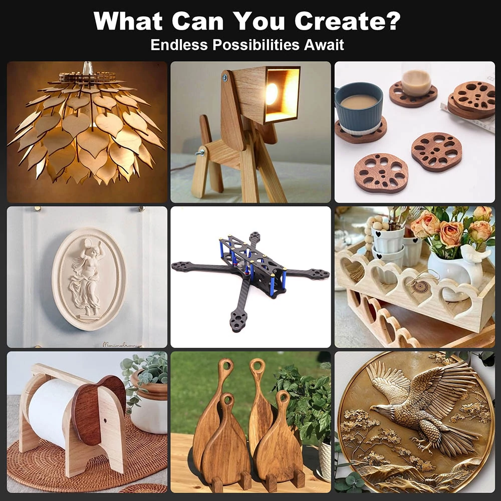 Sokoldalú felhasználás: Kezeli a fát, akrilt, PCB-t, alumíniumot, karbon szálas anyagokat és még sok mást. Igény szerint lézergravírozó modullal vagy élmaróval is bővíthető.