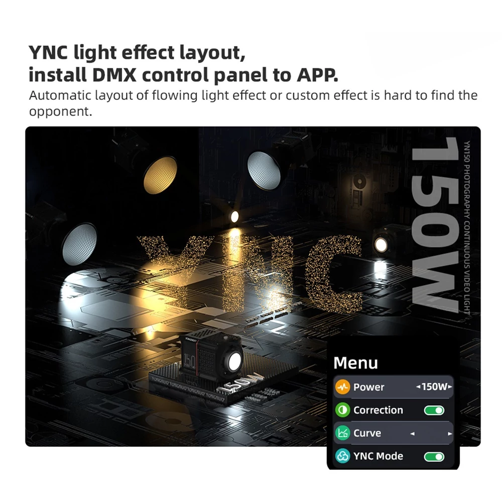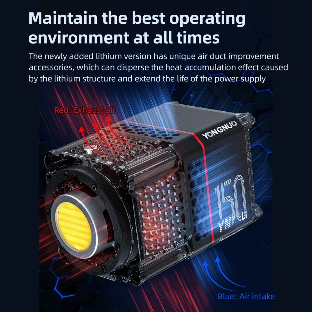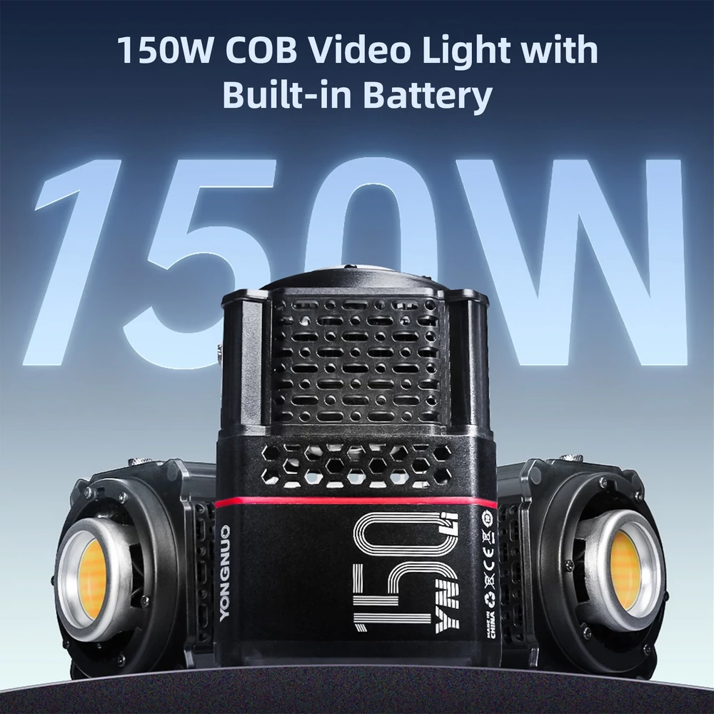 - Nagy teljesítmény és nagy fényerő: A stúdió LED videólámpa beépített 2500 mAh lítium akkumulátorral támogatja a 150 W-os nagy teljesítményű kimenetet. A standard reflektorral a maximális fényerő elérheti a lenyűgöző 19950 LM-et 1 méteres távolságban (5600K).